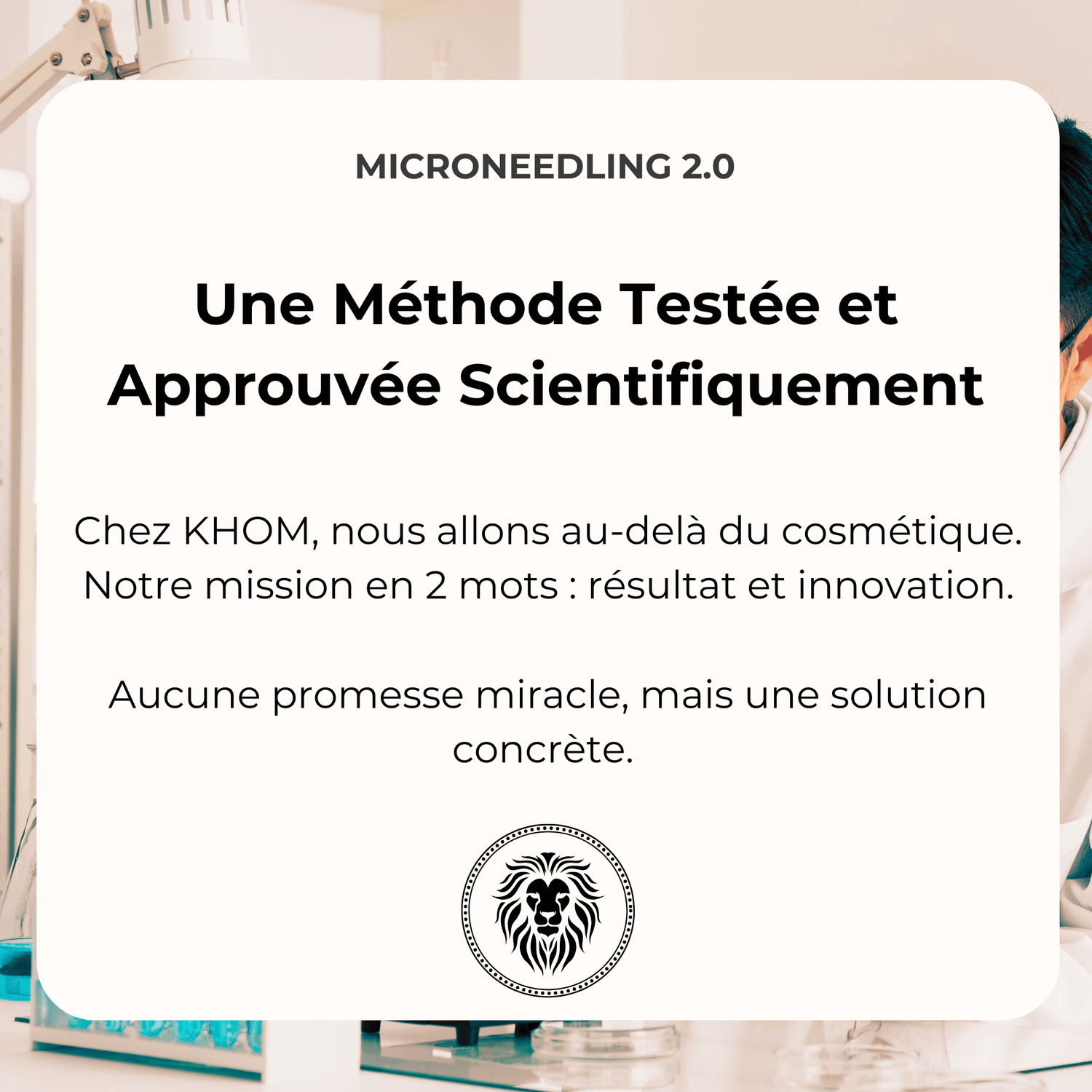 Chez KHOM, nous allons au-delà du cosmétique. Notre mission en 2 mots : résultat et innovation